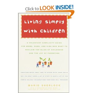 This book, Living Simply with Children by Marie Sherlock found it’s way home with me from the library. I’ve only paged through it so far but I’m excited by what she has to share. The first part of the book is all about the “whys” and the second about the “hows.” I’m especially looking forward to the “hows” since that is the hardest part. I’ll share more once I’ve read it cover to cover.