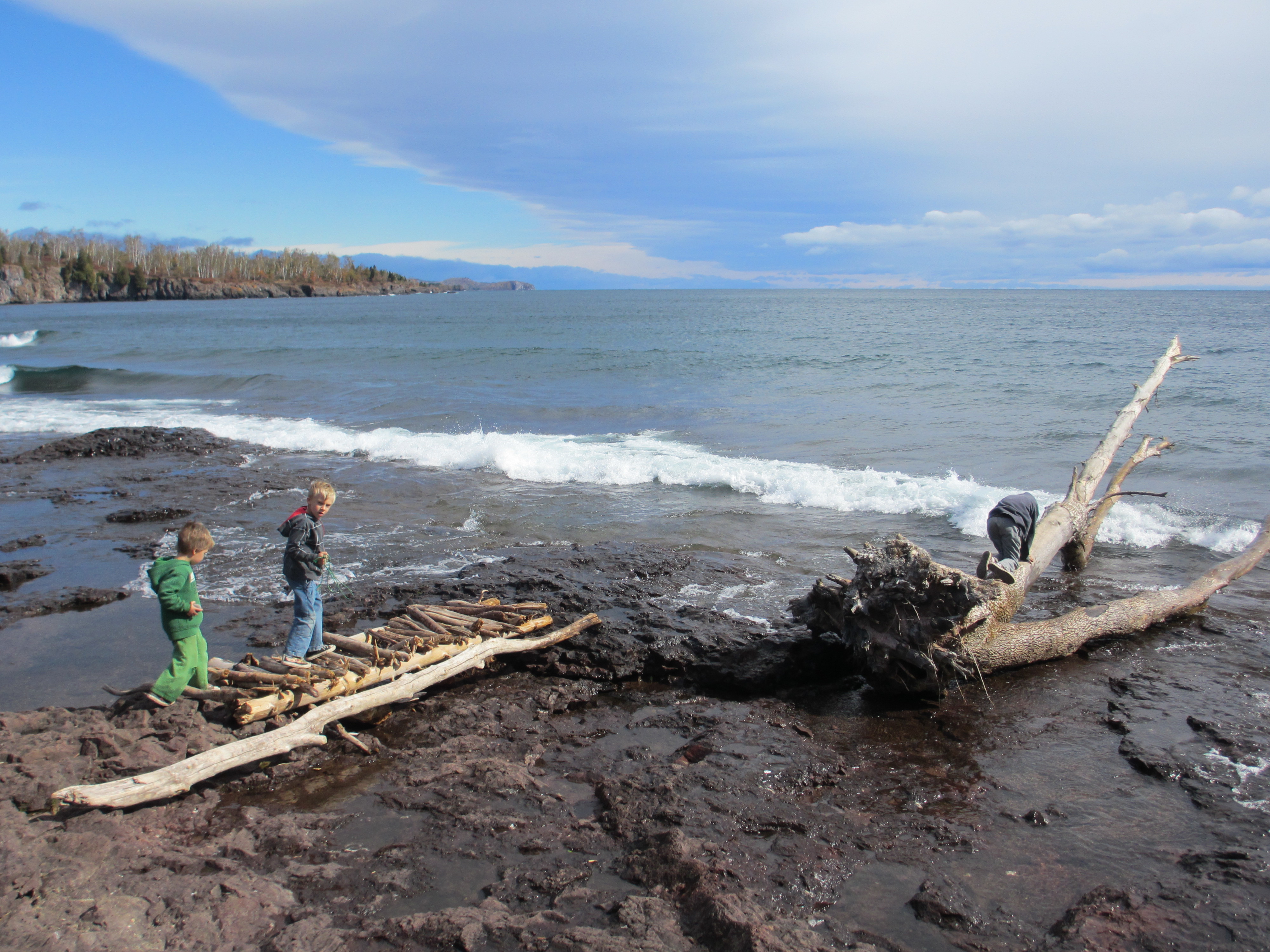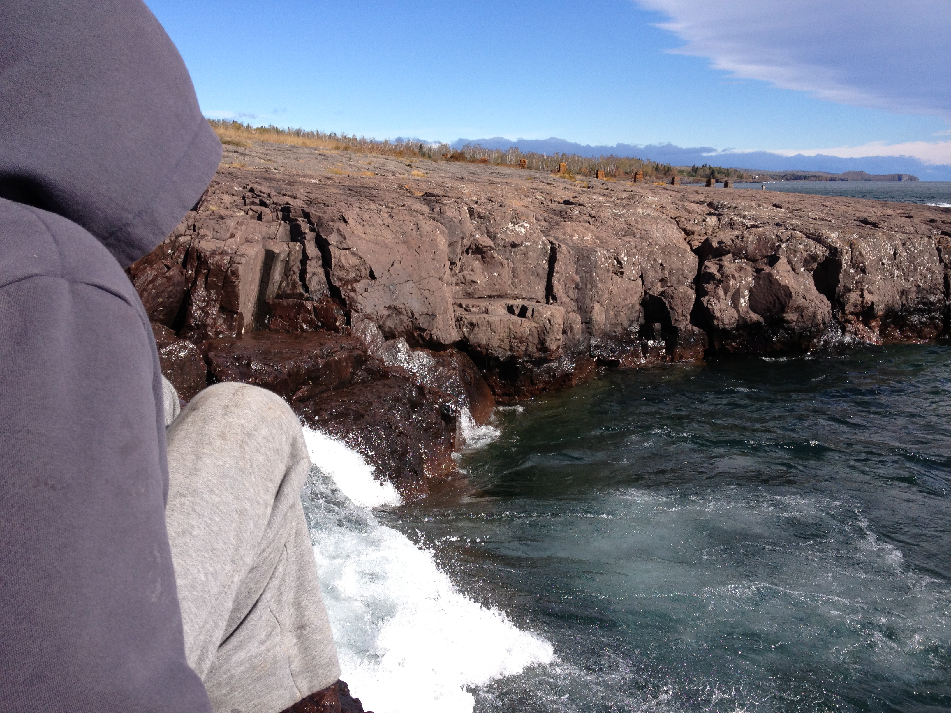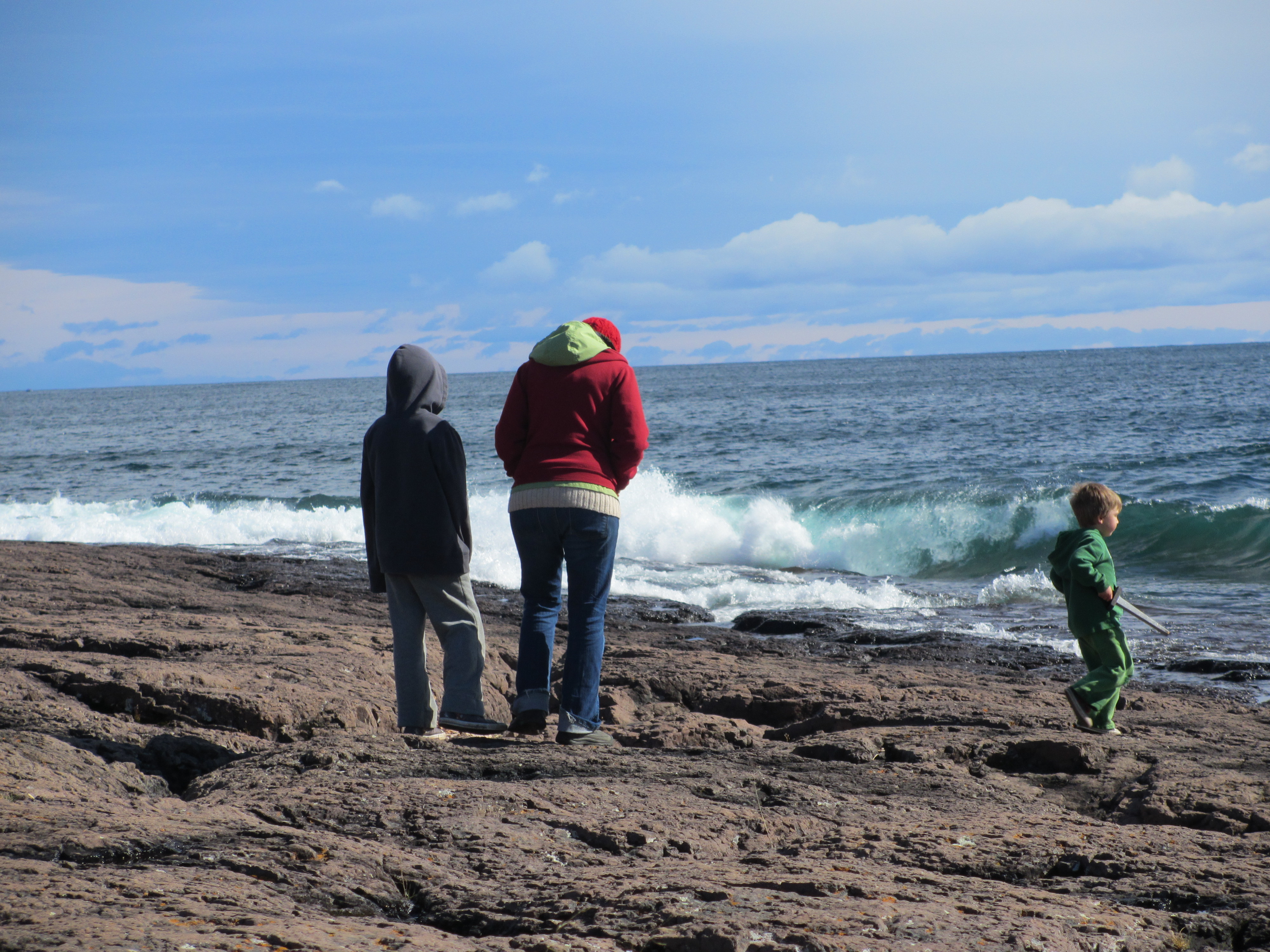 We welcomed Autumn on the North Shore. Image(That would be the arrowhead on the western shores of Lake Superior, for you non Minnesotans…) We camped at Gooseberry Falls and in our typical fashion, arrived in the dark and in the rain. As usual, we plowed on through and awoke to the most beautiful site…Lake Superior in all her glory. I’m not just saying this because it’s local to me, but Lake Superior is pure and absolute magic. Everyone should see it. The other Great Lakes are gorgeous. I adore the ocean. But there is something about this lake….maybe it’s the cold, or the fact that it is so beautiful and so dangerous at the same time. Maybe it’s the rocks rather than sandy beaches. Every time I am there, I feel like there is nothing amiss in my world.
